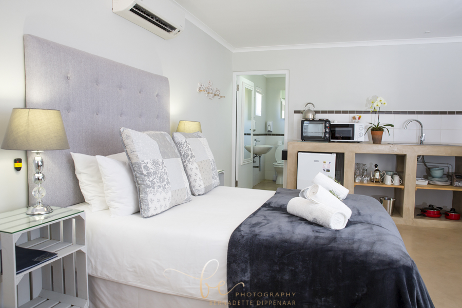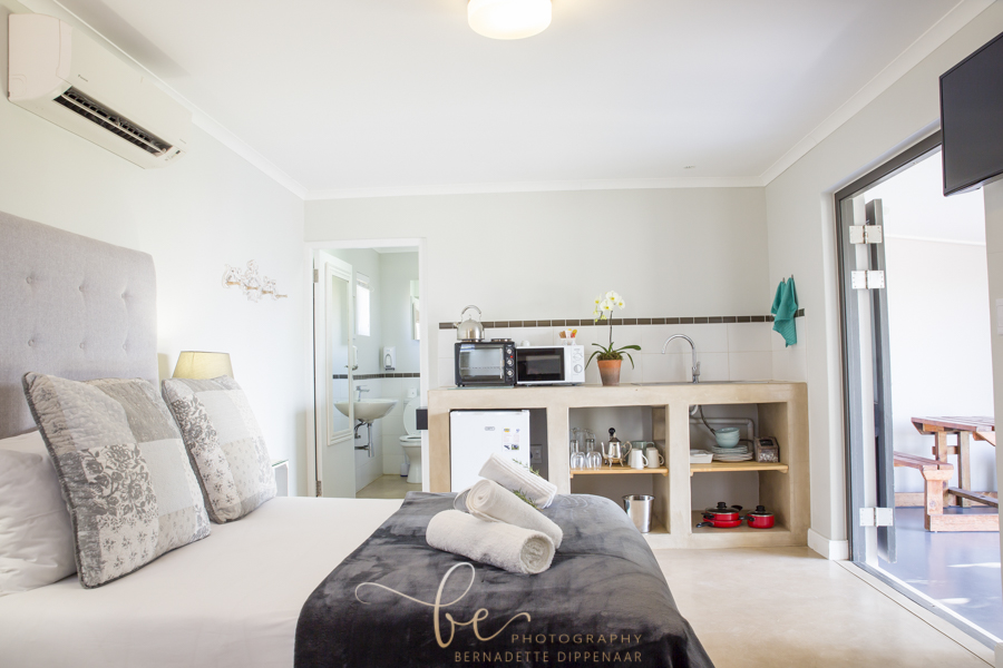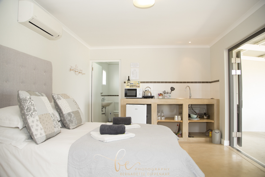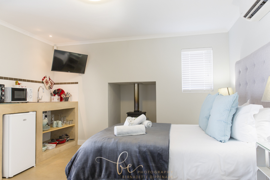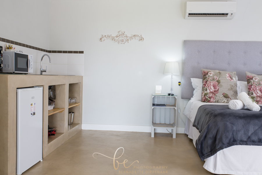 Sleeping two persons each, the five cottages can house a total of ten guests. Each cottage has a self-catering kitchenette and an outdoor braai area, encouraging guests to enjoy self-prepared meals while gazing over farm landscapes. Also available are an en-suite bathroom, fireplace, air-conditioning system, DSTV and Wi-Fi in communal area.