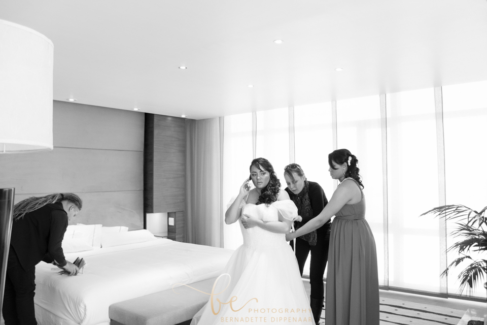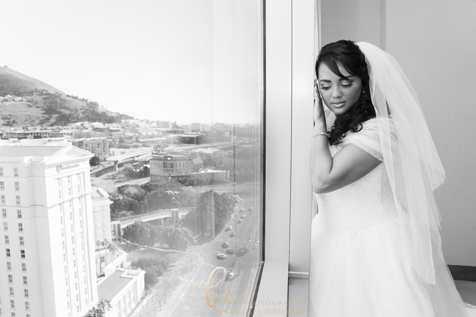 We started the big day with Monique and the bridal party at the Westin Cape Town – one of the most beautiful hotels I had the privilege to visit – taking the bridal portraits in the presidential suite. Wow!! Lucky for me I do not have a fear of heights – because it is true what they say – the view is always the best from the top floor!