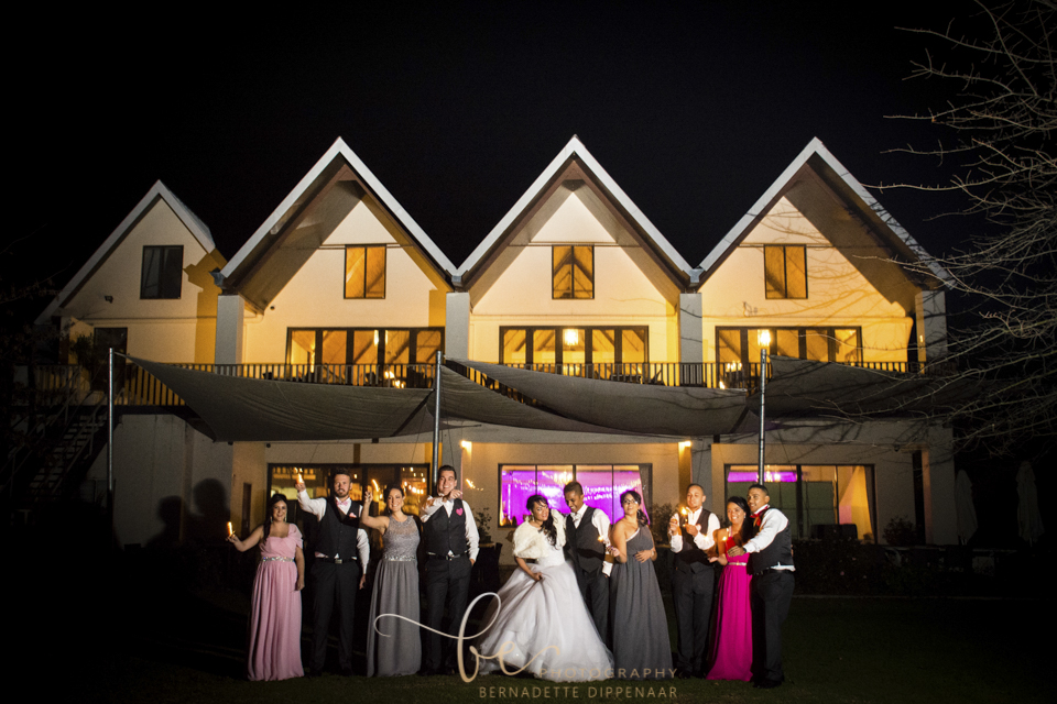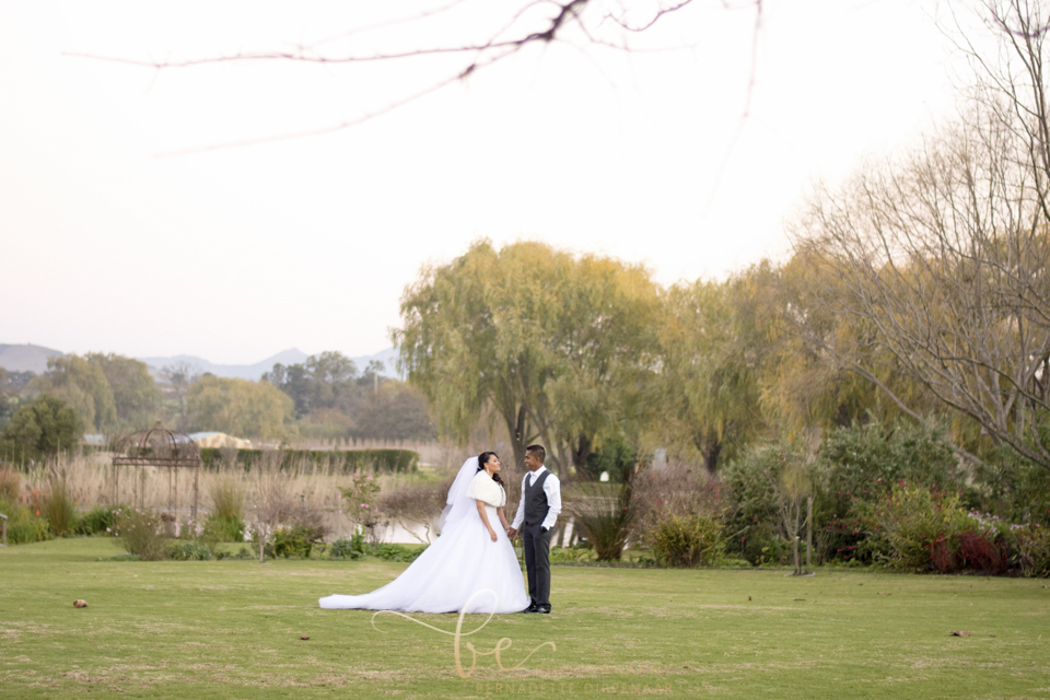 Most of the time Alida and me had to test the route across the lawn where it would be safe to walk. Thinking back it was very funny actually – stressful at the time though, it was cold and wet and I did not want Monique to ruin her shoes before the reception.